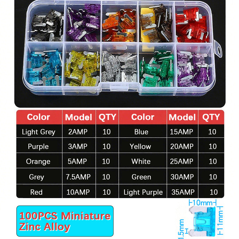 100pcs Car Fuse Assortment Set Profile Middle Size smll mini size Blade Type Fuse Auto Car Truck 2-35A Fuse Aluminum Alloy Zinc Alloy