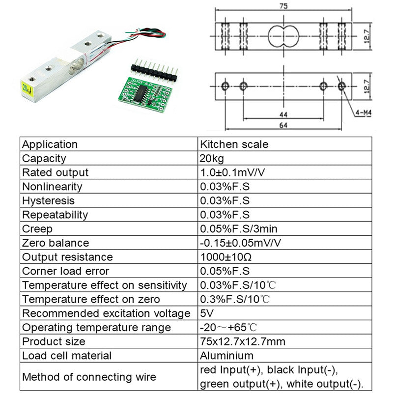 Load Cell Amplifier HX711 & Straight Bar Load Cell Weight Sensor 1kg | 5kg | 10kg | 20kg