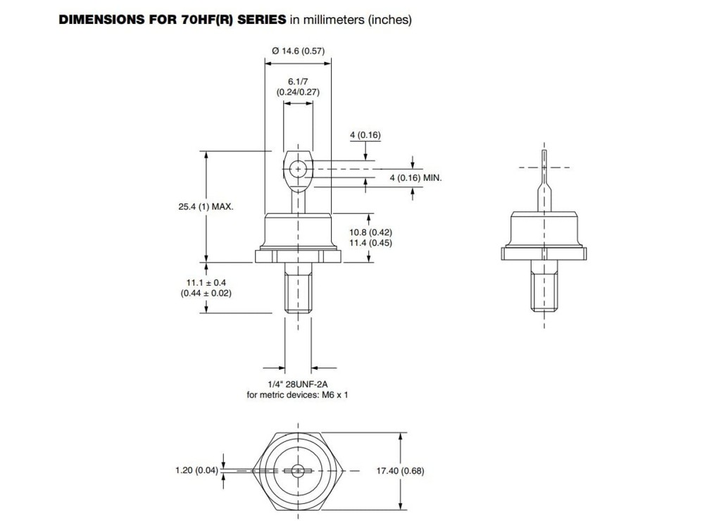 1 Pcs 70HF120 70A 1200V High Power Rectifier Metal Stud Type Rectifier Diodes Accessories