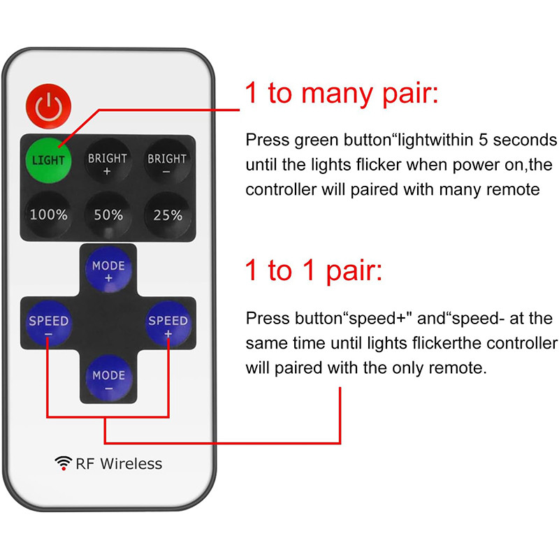● Remote control mode: RF Wireless