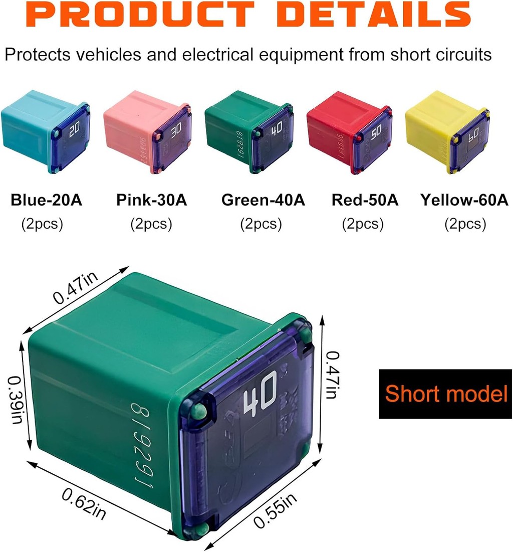 1PC PEC 15A 20A 25A 30A 40A Rectangle Car Fuse Square Auto FuseTube for Ford Mondeo Corola Mini Short Size