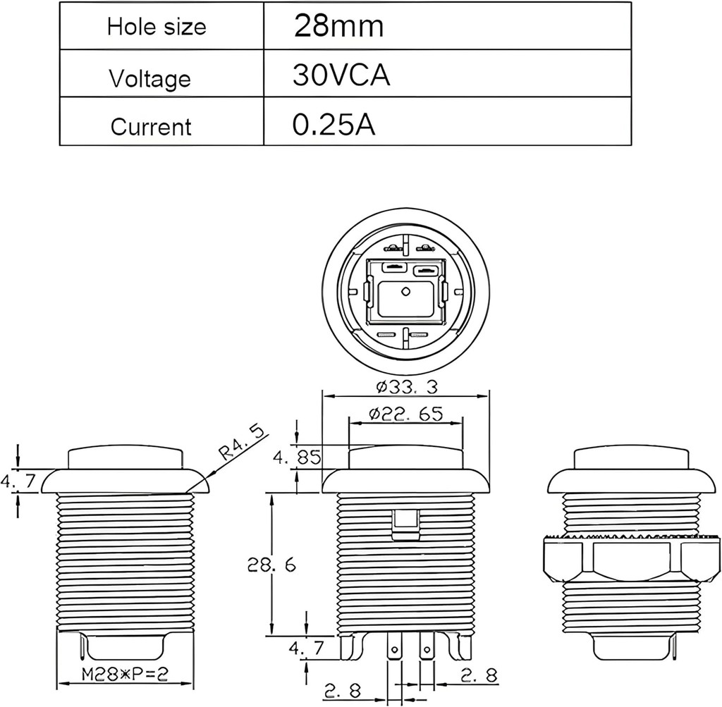 Button Interface Size: 2.8mm (0.110") Runs on 5 volt.