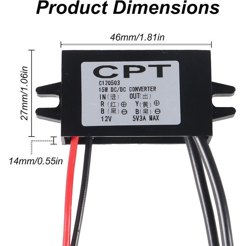 DC-DC 12V to 5V 3A 15W Power Converter Module - Dual USB Female DC Power Adapter - Car Power Converter