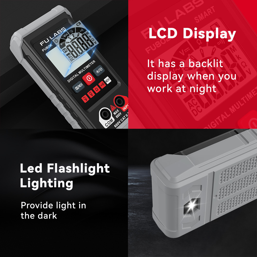 FULABS FU802 Smart Mini Digital Multimeter 600V Auto Range Multimeter AC DC Voltage Resistance Continuity Tester with Backlight NCV Non-contact Multimeter