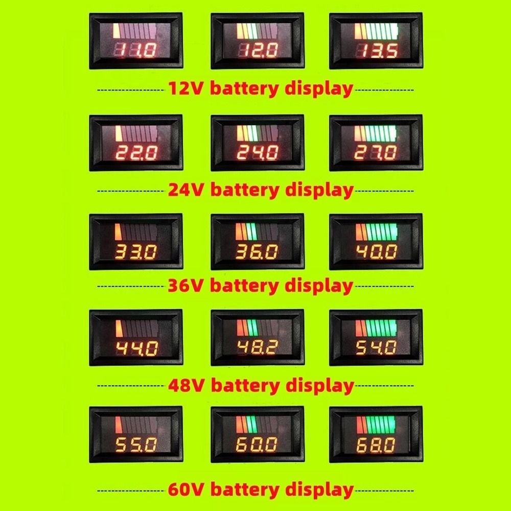 This gauge is suitable for 12V, 24V, 36V, 48V, 60V, 72V, battery cars (common for batteries below 96V), and can also measure lithium batteries, polymer batteries, and nickel-metal hydride batteries.