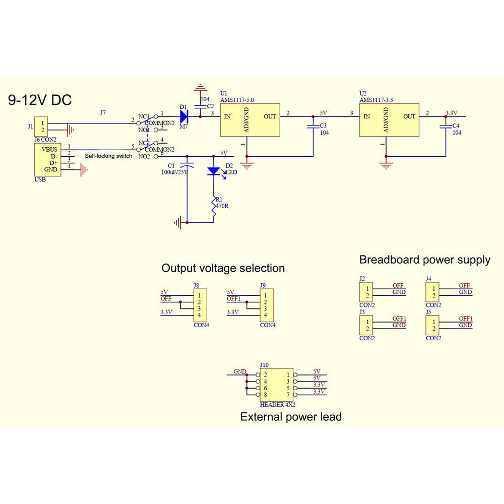 ● Breadboard power supply module, with 5 V, 3.3 V output voltages